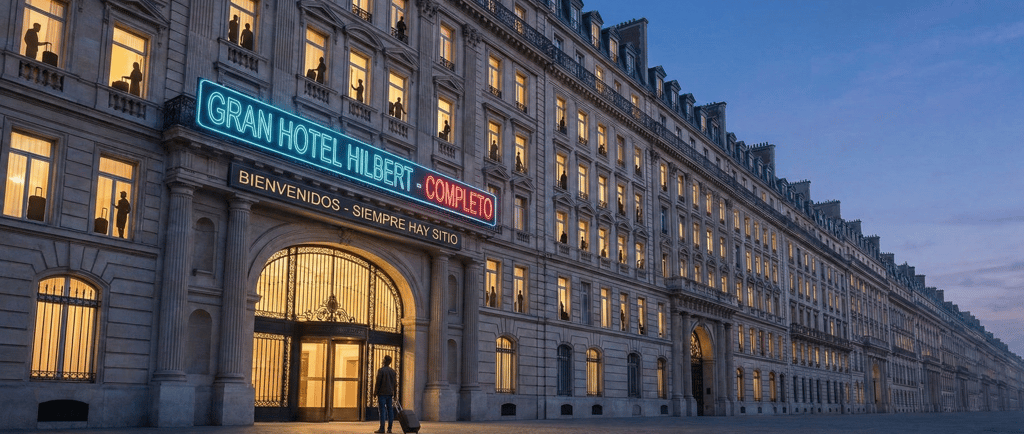 Imagina que eres el gerente de un hotel. Pero no de un hotel cualquiera en la costa, sino del "Gran Hotel de Hilbert". Este establecimiento tiene una característica muy especial que lo diferencia de cualquier otro edificio en el universo: tiene un número infinito de habitaciones.